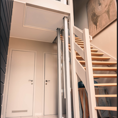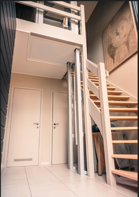 Kein platzaubender Schacht: Dank der durchdachten Through-Floor-Konstruktion integriert sich der Kabinenlift Pollock 25 besonders platzsparend in Ihr Zuhause. Der Lift benötigt keine Wand um befestigt zu werden, und wenn er sich auf der anderen Etage befindet, bleibt der Wohnraum frei nutzbar – ideal für offene, moderne Grundrisse.