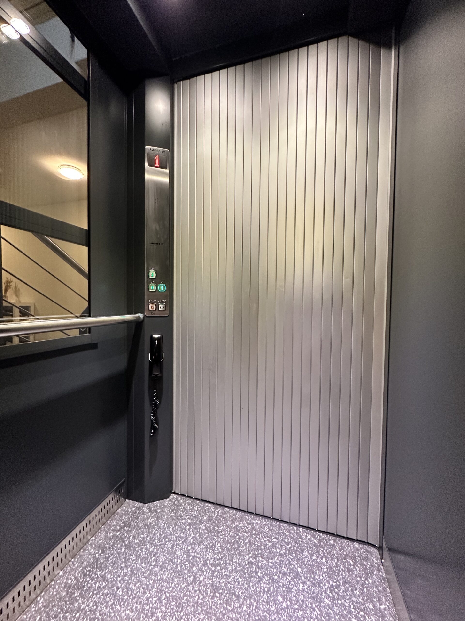 Hoher Fahrkomfort: In diesem Homelift finden Sie keine Vibrationen von einer Spindel oder unangenehme Gerüche durch die Hydraulik. Dank des selbsttragenden Schachts gibt es fast keine Geräuschübertragungen an die Gebäudestruktur.
